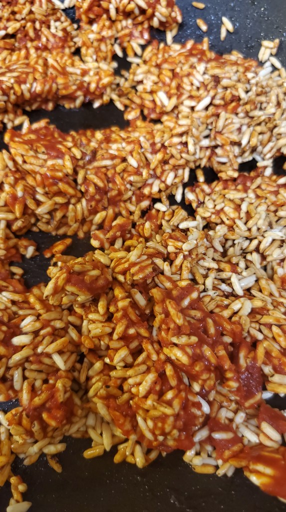 Stir occasionally, add water and or broth if needed until rice is fluffy and done… it will fill up the entire pan, so be sure to use a good size pan or pot to start.