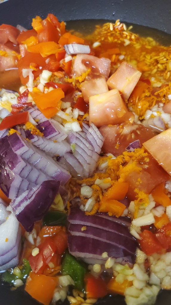 3 mini bell peppers, I used 1 red, 1 yellow, and 1 orange/diced (you can use 1/2 of and bell pepper of choice)